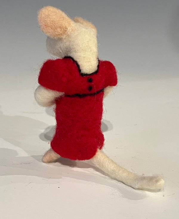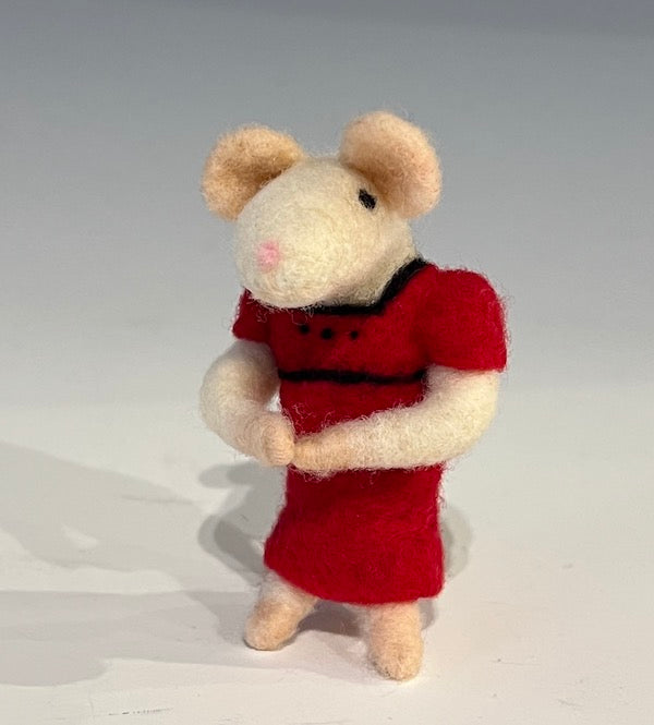 Dressed to the nines and ready to go. This cute little mouse is fully articulated allowing you to pose her as you'd like. Measures approximately 3" high.